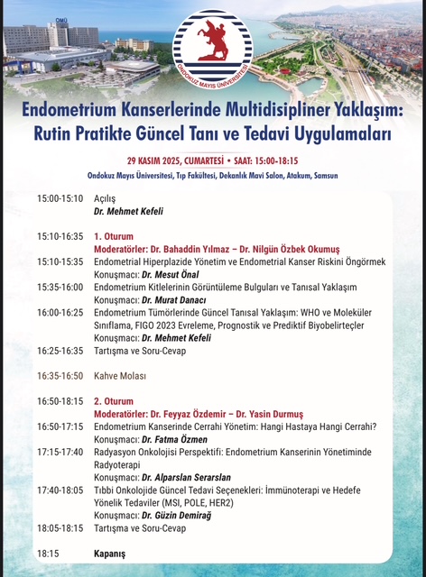 29 Kasım 2025 Cumartesi günü saat 15:00’te Tıp Fakültesi Dekanlık Mavi Salon'da "Endometrium Kanserlerinde Multidisipliner Yaklaşım" başlıklı kurs düzenlenecektir.