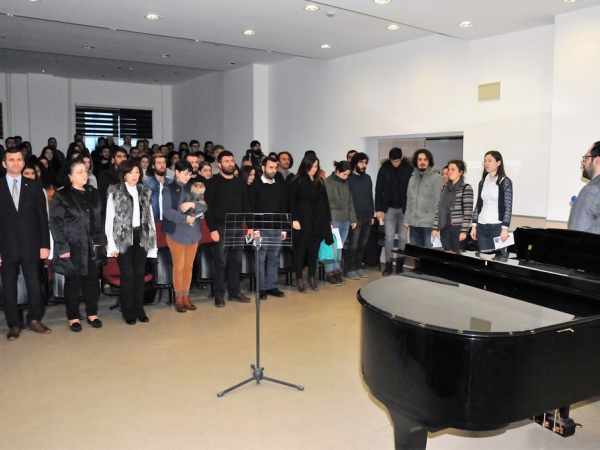 Konser öncesi kısa bir konuşma yapan Müzik Eğitimi Anabilim Dalı Başkanı Doç. Dr. Yakup Alper Varış, son zamanlarda ülkede meydana gelen terör saldırılarında şehit olan güvenlik görevlileri ve vatandaşlar için 1 dakikalık saygı duruşunda bulunulması ve İstiklal Marşı’nın okunmasından sonra konseri başlattı.