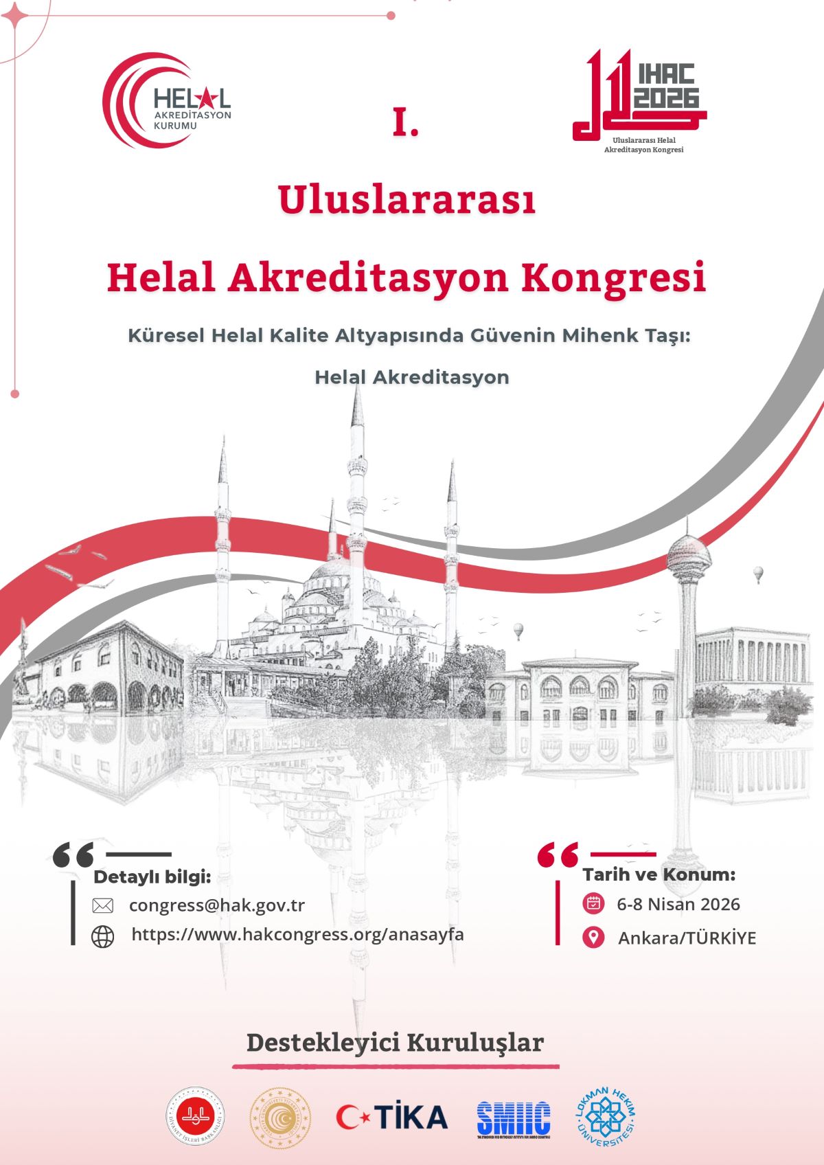 Helal Akreditasyon Kurumu (HAK), Türkiye’nin kalite altyapısı alanındaki güçlü birikimini helal kalite alanına aktarmak ve helal sektöründe öncü bir rol üstlenmek amacıyla faaliyetlerini sürdürmektedir. Bu faaliyetler kapsamında ana teması “Helal Akreditasyon” olan “I. Uluslararası Helal Akreditasyon Kongresi - Küresel Helal Kalite Altyapısında Güvenin Mihenk Taşı: Helal Akreditasyon” başlıklı kongrenin 6-8 Nisan 2026 tarihlerinde düzenlenmesi planlanmaktadır.