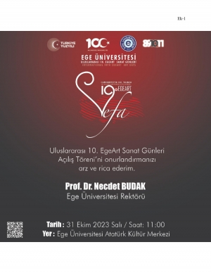 İzmir' de ve Ege Bölgesi' nde sanatın üretimine, geliştirilmesine ve tartışılmasına daha fazla olanak sağlamak amacıyla 31 Ekim- 1 Aralık tarihleri arasında "Cumhuriyetimizin 100. Yılına Vefa" teması ile 10. Uluslararası EgeArt Sanat Günleri düzenlenecektir.