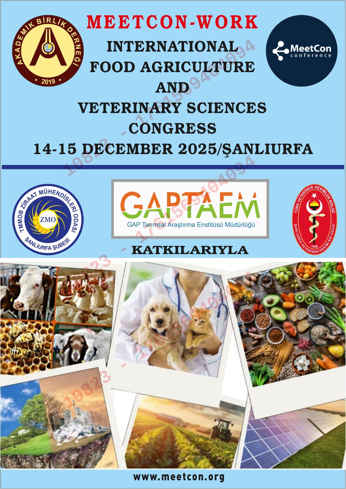 Harran Üniversitesi öğretim üyeleri ve Meet-Con Conference tarafından 14-16 Aralık 2025 tarihleri arasında Şanlıurfa’da “MEETCON - WORK Uluslararası Gıda, Tarım ve Veteriner Bilimleri Kongresi” düzenlenecektir.