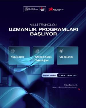 Bu doğrultuda 17.11.2025 tarihinde başlayan Milli Teknoloji Uzmanlık Programları başvuruları 02.12.2025 tarihinde sonlanacaktır.