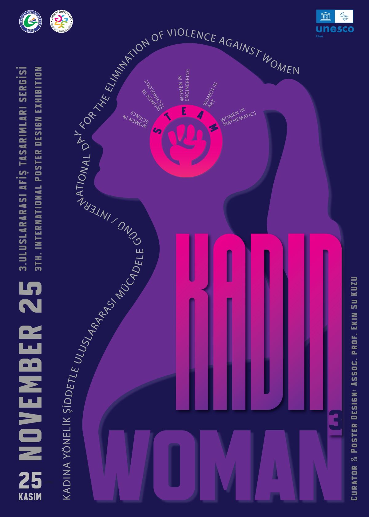 Giresun Üniversitesi Görele Güzel Saantlar Fakültesi Grafik Tasarımı Bölümü tarafından, "25 Kasım Kadına Yönelik Şiddetle Uluslararası Mücadele Günü" kapsamında "Kadın" temalı "Uluslararası Afiş Tasarımları Sergisi" düzenlenecektir.