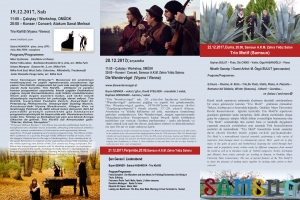 Ondokuz Mayıs Üniversitesi Devlet Konservatuvarı'nda 19 Aralık 2017 Salı günü başlayacak olan "Oda Müziğinde Alternatif Girişimler" adlı çalıştay ve konserleri kapsayan etkinlikler serisi 21 Aralık'tan itibaren Samsun Atatürk Kültür Merkezi'nde devam edecektir.