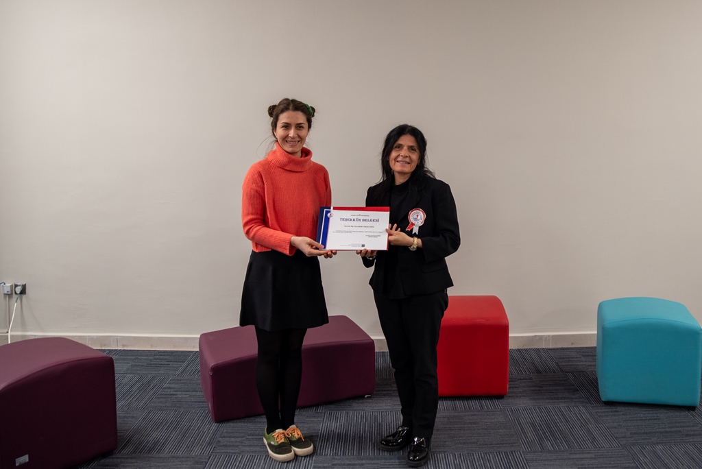 The event held at the Central Library was attended by Vice Rector Prof. Dr. Ayşe Pınar Sumer, Secretary General Prof. Dr. Erhan Burak Pancar, Rector’s Advisor Prof. Dr. Serkan Şen, Head of the Department of Library and Documentation Uğur Donbay, as well as academics and students.