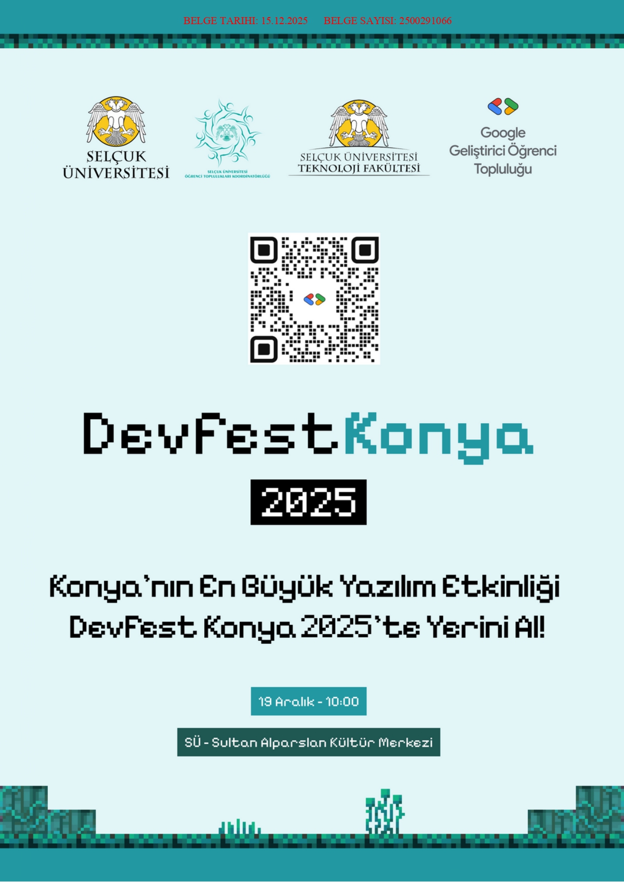 Selçuk Üniversitesi Teknoloji Fakültesi Dekanlığı Bilgisayar Mühendisliği Bölümü ile Google Geliştirici Öğrenci Topluluğu tarafından ortaklaşa "DevFest Konya 2025" etkinliği düzenlenecektir.