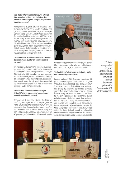 Samsun Valisi Doç. Dr. Zülkif Dağlı ise 2021’in