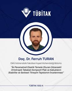 4,935Ondokuz Mayıs Üniversitesi (OMÜ) Mühendislik Fakültesi İnşaat Mühendisliği Bölümü öğretim üyesi Doç. Dr. Ferruh Turan, TÜBİTAK 1002-A Hızlı Destek...