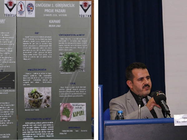 Proje Yürütücü Yardımcısı Dr. Murat Emir proje pazarı ile sergilenen öğrencilerin hazırlamış oldukları iş planlarından başarılı olanları açıkladı ve ilk üç dereceye giren öğrencilere ödülleri protokol üyeleri tarafından verildi