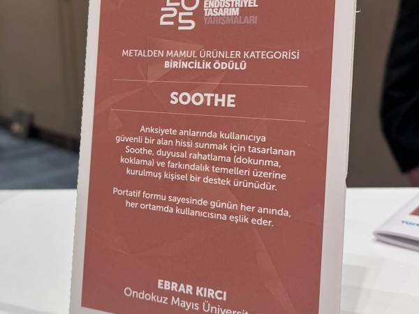 Ondokuz Mayıs Üniversitesi (OMÜ) Güzel Sanatlar Fakültesi Endüstriyel Tasarım Bölümü son sınıf öğrencisi Ebrar Kırcı, İstanbul Maden ve Metaller İhracatçı Birlikleri (İMMİB) 2025 Endüstriyel Tasarım Yarışması’nda “Soothe” adlı projesiyle Metalden Mamul Ürünler kategorisinde birincilik ödülünü kazandı.