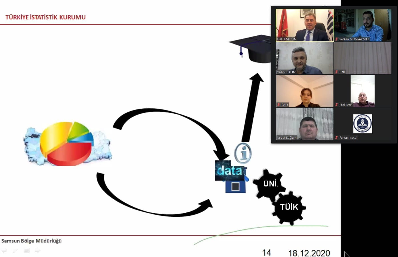 İstatistik Bölümü mezunu olan Türkiye İstatistik Kurumu (TÜİK) Samsun Bölge Müdürü Halil Emecen, çevrim içi etkinlikte öğrencilere TÜİK'in yapısını, staj imkânlarını ve kariyer hedefleri konularında deneyimlerini aktardı.