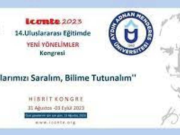 Aydın Adnan Menderes Üniversitesi Eğitim Fakültesi tarafından 31 Ağustos-3 Eylül 2023 tarihleri arasında "14. Uluslararası Eğitimde Yeni Yönelimler Kongresi'' düzenlenecek olup, kongreye ilişkin ayrıntılı bilgiler https://www.iconte.org/ adresinden ulaşabilirsiniz.