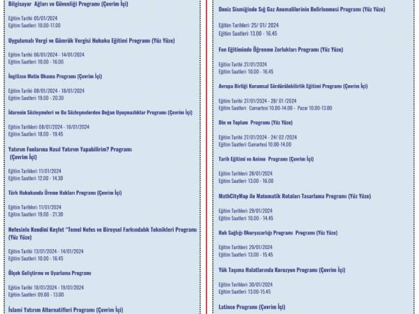 Dokuz Eylül Üniversitesi Sürekli Eğitim Merkezi 2024 Yılı Ocak Ayı Eğitim Programları