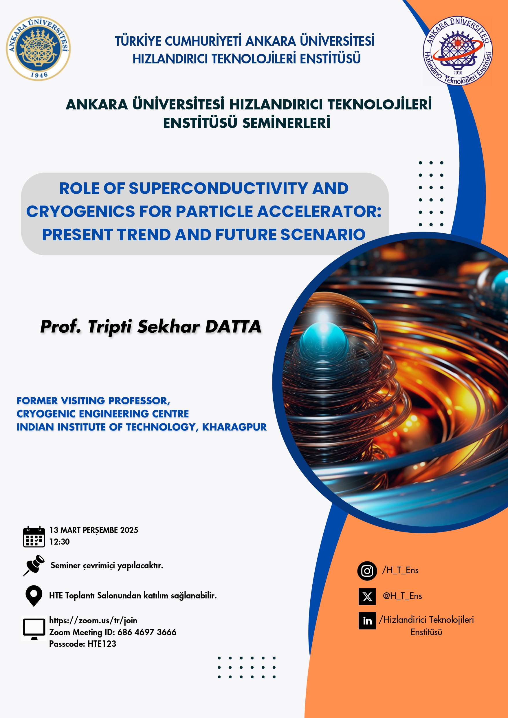 Ankara Üniversitesi Hızlandırıcı Teknolojileri Enstitüsü tarafından 13 Mart Perşembe günü saat 12.30 ve 13.30'da Hızlandırıcı Teknolojileri Enstitüsü Seminerleri düzenlenecektir.