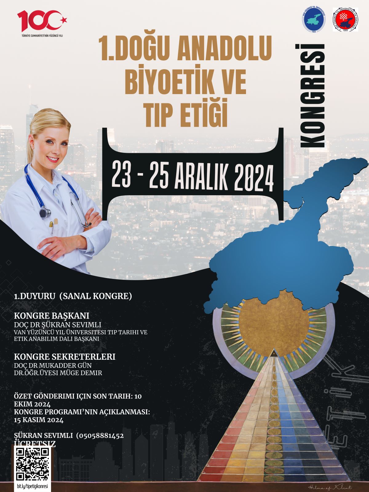 Van Yüzüncü Yıl Üniversitesi Tıp Fakültesi Tıp Tarihi ve Etik Anabilim Dalı tarafından 23-25 Aralık 2024 tarihleri arasında sanal olarak "Doğu Anadolu Biyoetik ve Tıp Etiği Kongresi" düzenlenecektir.