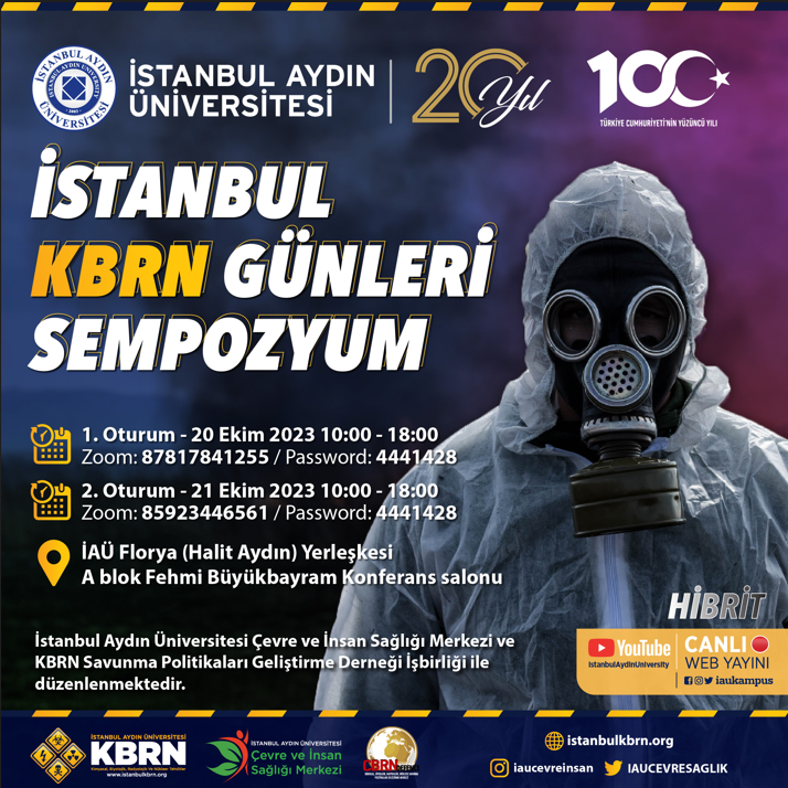 İstanbul Aydın Üniversitesi Çevre ve İnsan Sağlığı Uygulama ve Araştırma Merkezi (ÇEVSAM), Sağlık Bilimleri Fakültesi ile KBRN Savunma Politikaları Geliştirme Derneği koordinasyonu tarafından birincisi gerçeklecek olan "İstanbul KBRN Günleri" 20–21 Ekim 2023 tarihinde İstanbul Aydın Üniversitesi Florya Yerleşkesinde Hibrit olarak gerçekleşecektir.