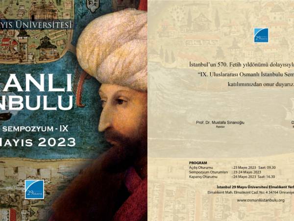 İstanbul 29 Mayıs Üniversitesi tarafından 23- 24 Mayıs 2023 tarihleri arasında düzenlenecek olan “IX. Uluslararası Osmanlı İstanbul Sempozyumu”na ilişkin detaylı bilgiye http://osmanliistanbulu.org/tr/ adresinden ulaşılabilmektedir.