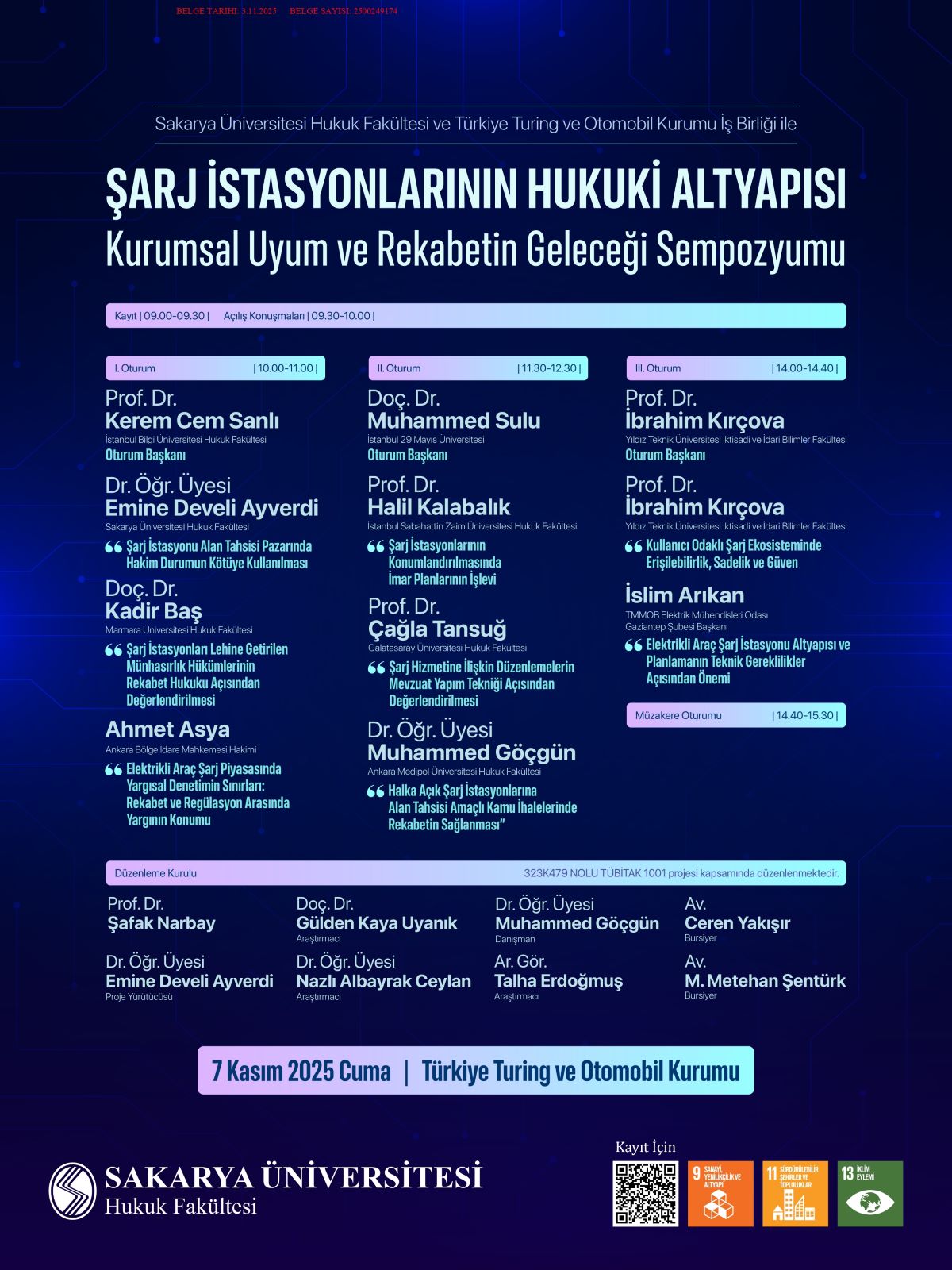 Sakarya Üniversitesi Hukuk Fakültesi ve Türkiye Turing ve Otomobil Kurumu iş birliği ile "Şarj İstasyonlarının Hukuk Altyapısı Kurumsal Uyum ve Rekabetin Geleceği" başlıklı bir sempozyum düzenlenecektir.