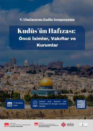 Ankara Hacı Bayram Veli Üniversitesi İlahiyat Fakültesi, İslami Araştırmalar Uygulama ve Araştırma Merkezi (İSLARA) ile Vakıflar Genel Müdürlüğü ve UFİDAB (Uluslararası Filistin Dayanışma Birliği) iş birliği ile ana teması "Kudüs'ün Hafızası: Öncü İsimler, Vakıflar ve Kurumlar" olan ''V. Uluslararası Kudüs Sempozyumu''nun 17-18 Nisan 2026 tarihleri arasında düzenlenmesi planlanmaktadır.