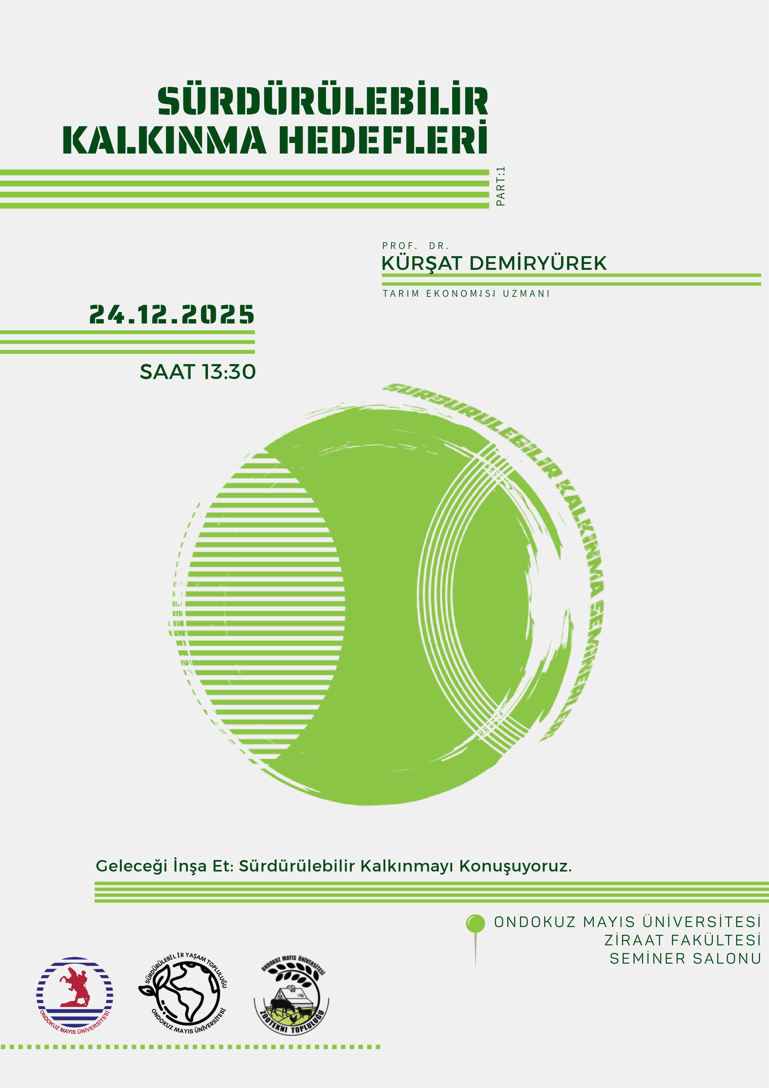 Gençler arasında kolektif bir farkındalık oluşturmayı ve sürdürülebilir yaşam pratiklerine yönelik bilgi paylaşımını artırmayı amaçlayan seminer dizimizin ilk etkinliği, Prof. Dr. Kürşat Demiryürek’in konuşmacı olarak katılımıyla 24/12/2025 tarihinde, saat 13.30 da Ziraat Fakültesi Fahrettin Tosun Salonu’nda gerçekleştirilecektir.