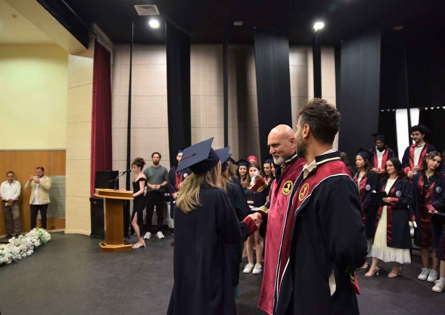 Nesrin Öztürk, the valedictorian of the Faculty of Fine Arts, said, "We left behind our four-year education life with its good and bad memories. Sometimes we stayed up all night in front of the canvas, sometimes, we worked until the night in the workshops, and sometimes we had times when we were away from our workshops. We are grateful for the efforts and efforts of our esteemed teachers who supported us during these periods. Today, we are only ending our undergraduate education here, but I know that learning is an endless sea. I have never hesitated and will never hesitate to drown in this sea. Every ending begets a beginning. This ending will be a beginning for me and my fellow graduates. On behalf of all my fellow students with whom I share this pride, I would like to thank the OMU family, especially our professors."